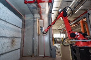 Machine pour le traitement en horizontal des profils. Le produit vient appliqué par une série de buses. L'excès vient enlevé par des jets d'air conformes au but. La pompe et les jets d'aire sont contrôlés automatiquement et donc ils entrent en fonction seulement quand la pièce leur passe devant. De cette façon on réduit la consommation d'air comprimé. Le fonctionnement en circuit fermé garantit une consommation minimale de produit.