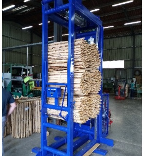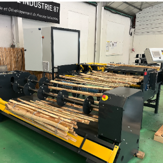 Une fois le bois positionné contre le taquet, l’opérateur active un bouton qui ferme les pinces et déclenche automatiquement le mouvement de la lame. Après la coupe, les pinces s’ouvrent et le taquet libère le rondin, qui est acheminé vers la plaque de butée. Selon sa qualité, les éjecteurs l’orientent soit à droite, soit à gauche.