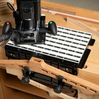 Parfait pour encastrer des ferrures, ce gabarit universel réalise des incrustations ultrafines, des pièces de rapiéçage, des trous en système 32 et plus encore.