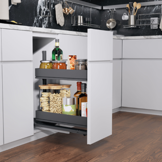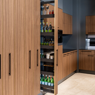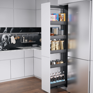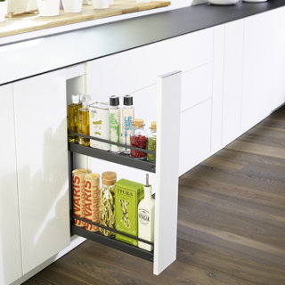 Dispensa junior III - la petite colonne pour le meuble bas de cuisine. Le coulissant à sortie totale particulièrement flexible offre de nombreuses options...