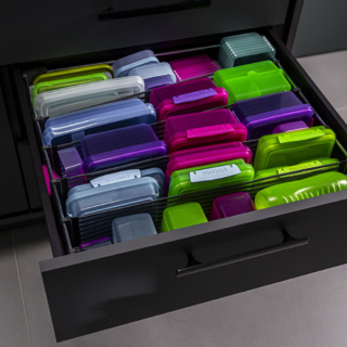 Avec SpaceFlexx® fini le chaos dans les tiroirs. Cuisine, salle de bain, chambre ou ailleurs, le système avec ses séparateurs flexibles s'adapte aux objets et met de...