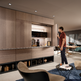 La pièce maîtresse est une coulisse identique quelle que soit la technologie de mouvement sélectionnée (amorti BLUMOTION, éjection et amorti mécanique TIP-ON BLUMOTION ou ouverture électrique SERVO-DRIVE), avec une seule position de vissage en hauteur et en profondeur.