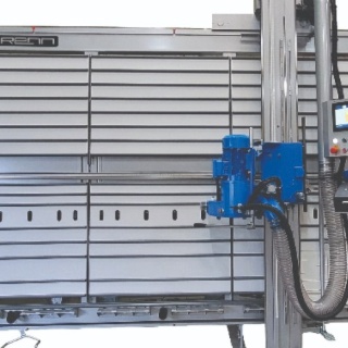 1 volet à commande pneumatique permet d’ouvrir automatiquement les goulottes verticales ou la goulotte horizontale en fonction de la position de la lame